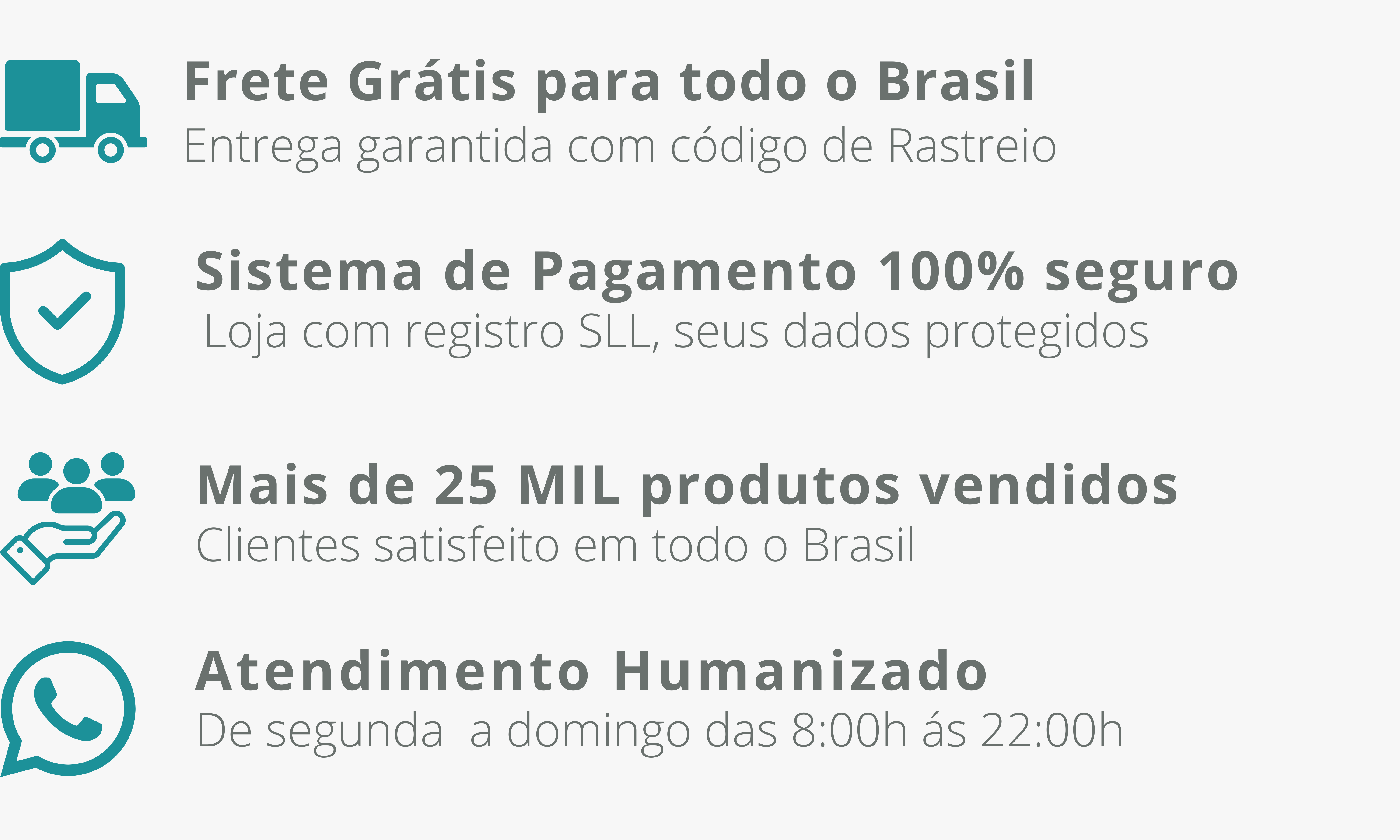 Para qualquer dúvida sobre funcionalidade do produto, valor ou prazos de entregas, nossa equipe ficará feliz em lhe atender através da nossa central de atendimento, via whatsapp ou e-mail.